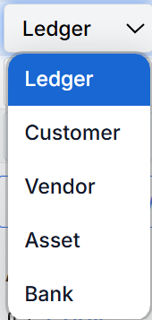 of which Customer (receipts), Vendor (expenses) or Ledger (commissions) are most often used.