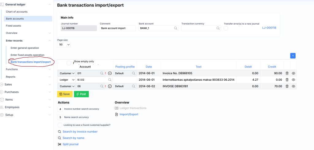 The bank transaction journal is adapted for more convenient import of bank transactions, although the import itself can also be entered through the general journal.