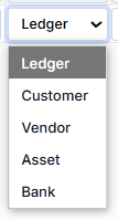 Ledger – selected from the account from the chart of accounts;