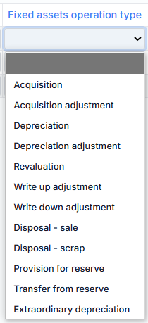 Fixed assets operation type – fixed asset transaction type, where possible values are: