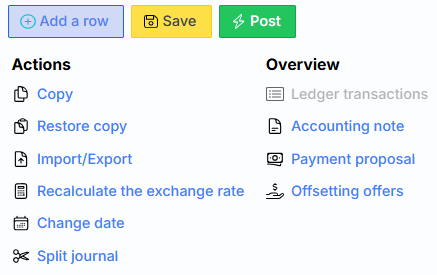 Ledger transactions – G/L transactions related to this journal generated after posting exhibition. The link is inactive until the journal is registered.