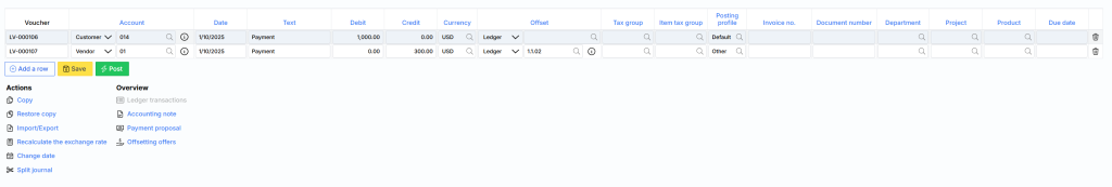 Offset account – a correspondent account is offered when creating new lines.