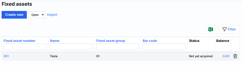 Fixed asset number – fixed asset card code, which must be unique.