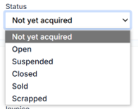 • Not yet acquired – the initial state, when the asset is not yet acquired, but only a created card.