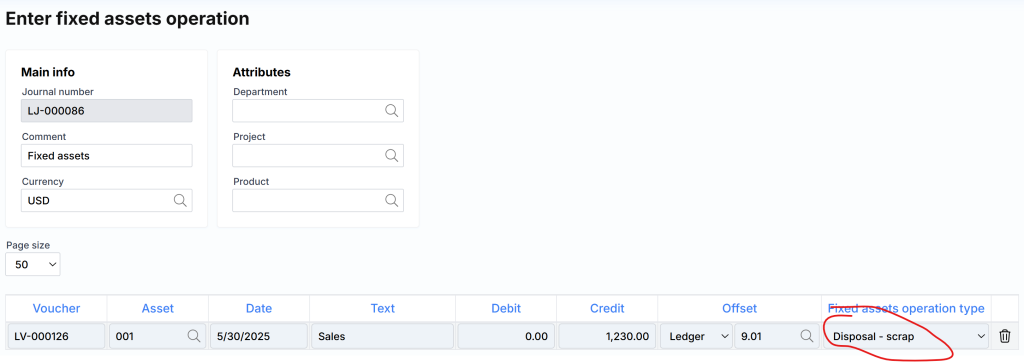 After registering this invoice, the second step still needs to be completed – to write off the fixed asset: