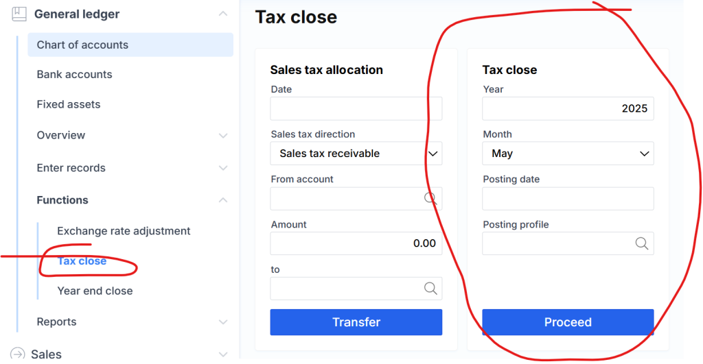 In the VAT closing form, you need to select any date from the month you want to close, the registration date if it does not coincide with the first date (the old VAT period is closed) and the Posting profile. According to it, the VAT tax payable or receivable will be added to the vendor (tax authority).