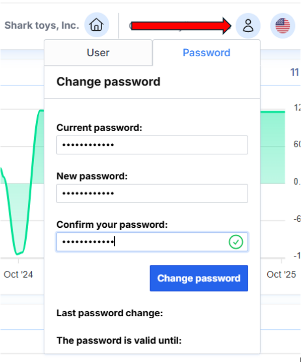 1. Using the username and password created by Monet. You can change your password by clicking on your first and last name in the upper right corner: