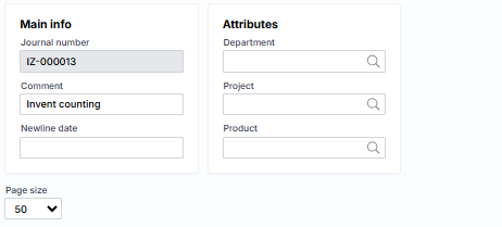 This type of journal is intended for entering the results of inventory of items. The upper part consists of: