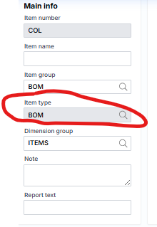 After creating a item of type BOM, the product specifications (what products it consists of) are described. This is done by clicking the Product specifications link on the product card , which opens the following form: