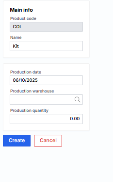 Where the completion date, product quantity and warehouse are specified. By clicking Create, a production journal is created: