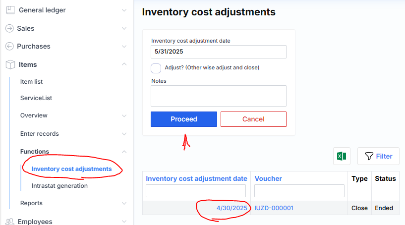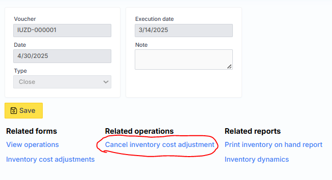 In the case of closure, the same calculation will be performed, only the system will no longer allow registering transactions related to goods in the closed period.