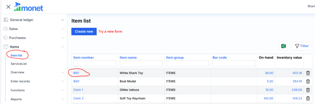 Item list