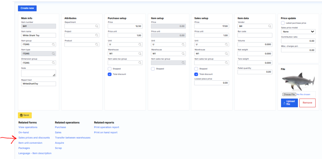 and by clicking the link ‘Sales prices and discounts’ at the bottom.