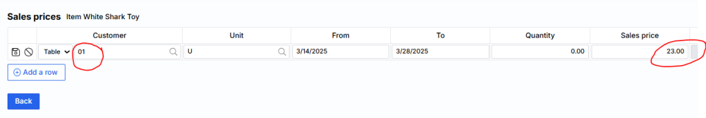 A form will open where you can enter prices based on clients.