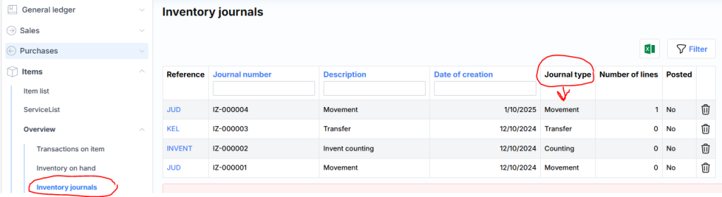 There are four types of journals available in the Items module: