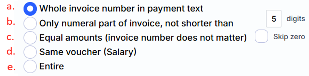 a – the strictest condition for settling invoices with payments. In this case, both the series and number must be present in the payment text. For example: “payment according to sf WRR-0000023”.