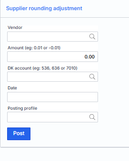 Sometimes there are cases when all amounts for a supplier are settled, but the balance is not zero. In this case, entering a new transaction does not solve anything, because there is nothing to settle the entered amount with. To solve this problem, a new function Supplier Rounding Adjustment has been created :