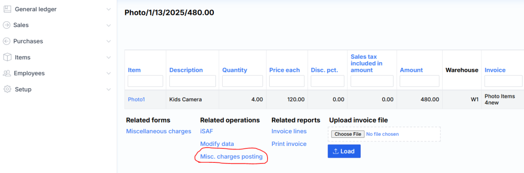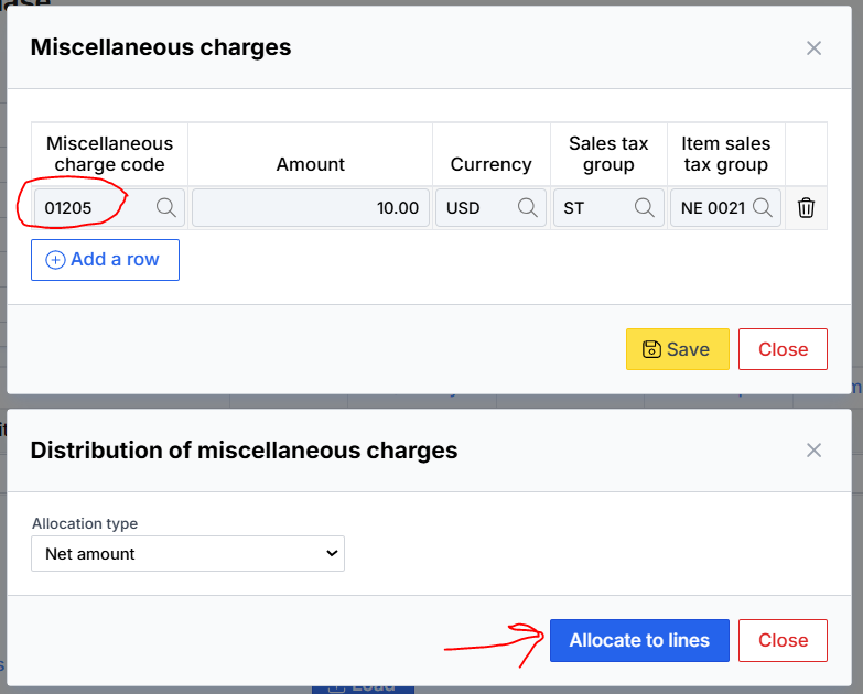 Next, click the Misc. charges posting link. In the opened window, the distribution is carried out using the same principle as in the first method.