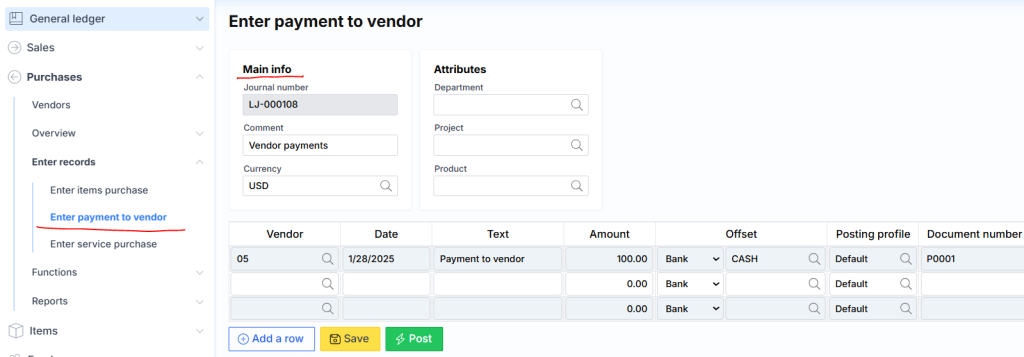 This form records the supplier’s payment. Since bank transactions are usually imported, this form is the most convenient to use when entering/issuing cash expense orders.