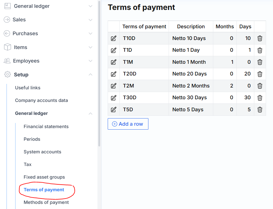 Payment terms allow you to calculate the Pay by date faster and automatically: